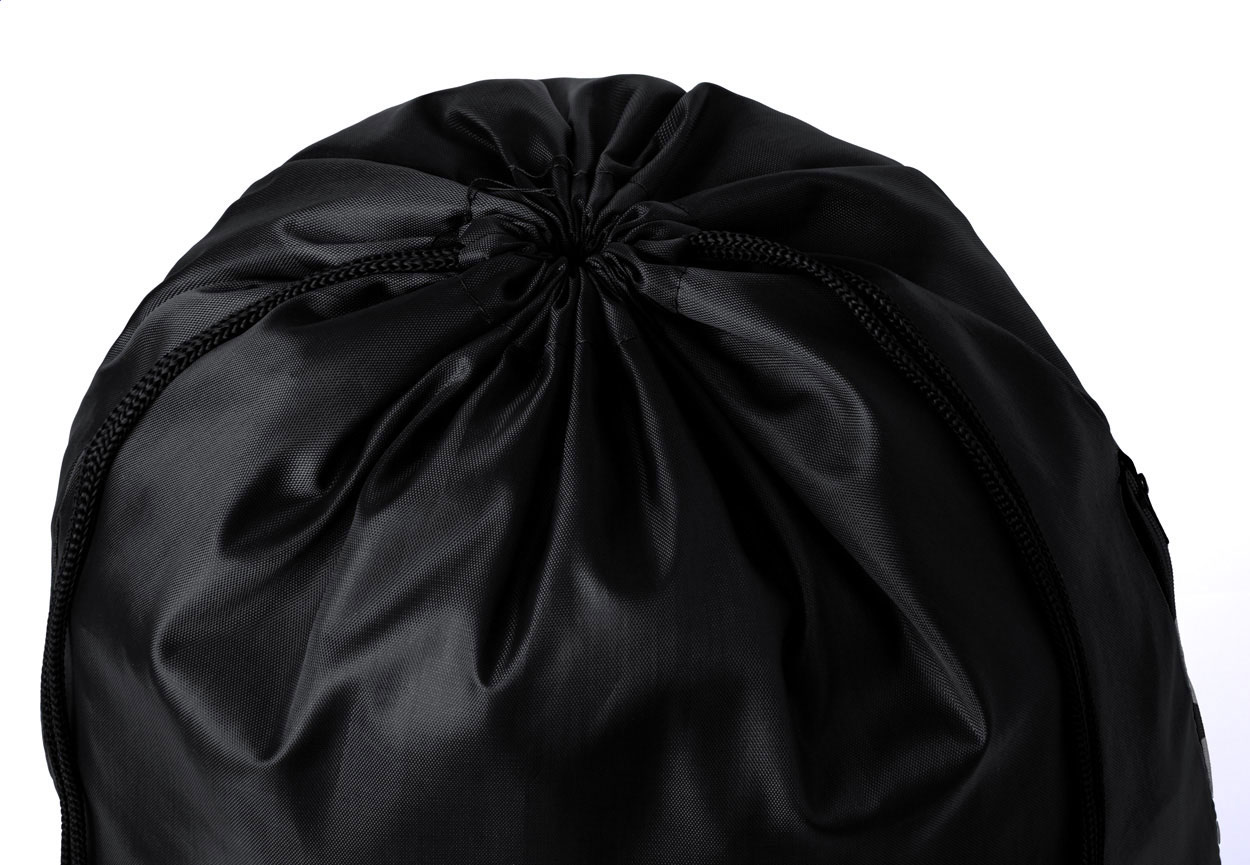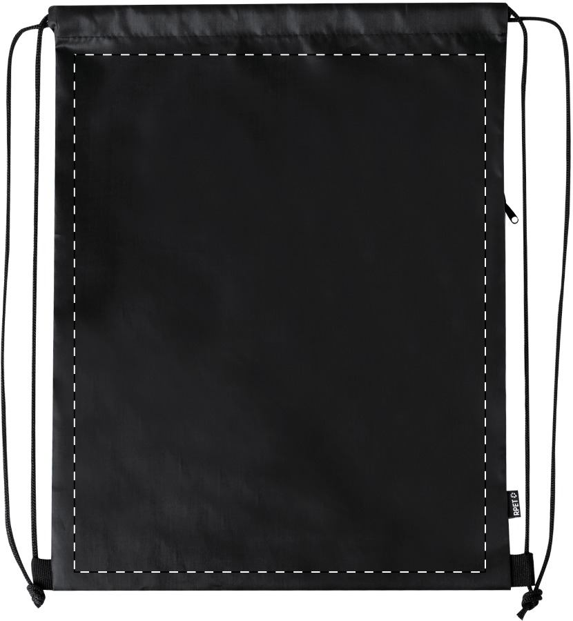 RPET stahovací taška s boční kapsou na zip, 210T RPET polyester s výrazným štítkem RPET.