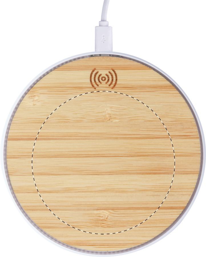 Bezdrátová nabíječka (10W) na mobil s bambusovým krytem. Vč. USB nabíjecího kabelu.