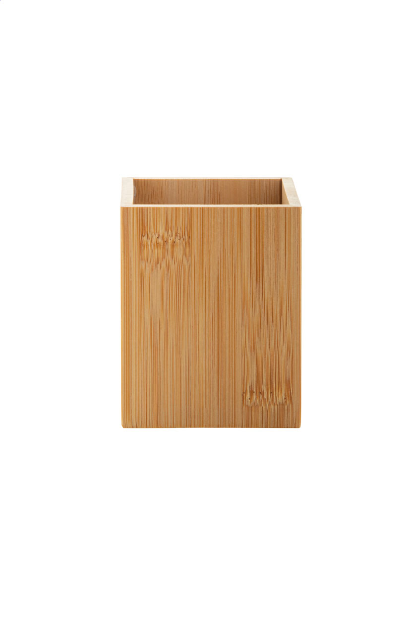 Bambusový stojánek na pera s multifunkčními digitálními hodinami. Funkce: budík, kalendář a teploměr. S knoflíkovou baterií.
