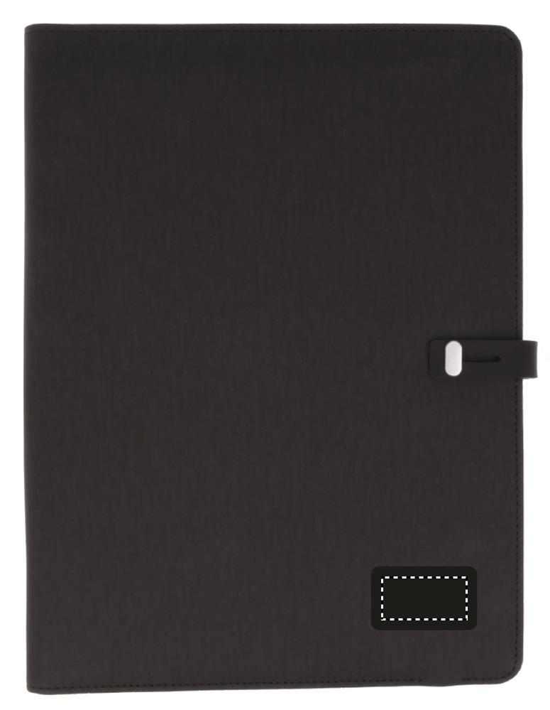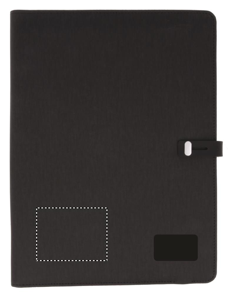 A4 konferenční desky na dokumenty s PU podšívkou. Obsahující DC5V/1A bezdrátovou power banku 4000 mAh. Konektory micro USB a typ C. 40 stránkový linkovaný blok a několik vnitřních kapes. Černý kovový plíšek vhodný pro Vaše logo.