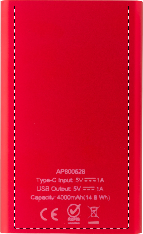 USB power banka v pouzdře z recyklovaného hliníku s 4000 mAh baterií. S 1 portem USB a 1 portem USB-C pro nabíječku. Vstupní port USB-C. Včetně USB nabíjecího kabelu.