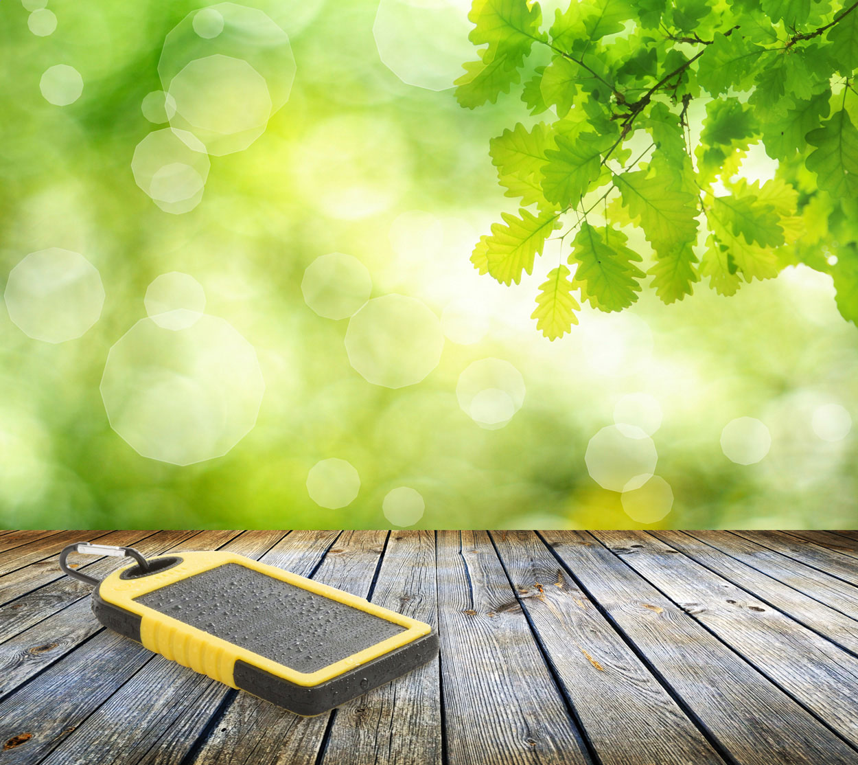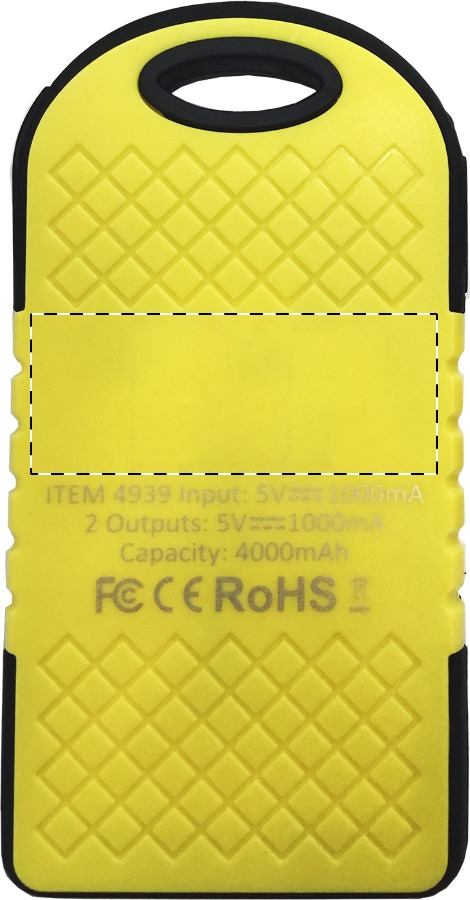 Plast/silikonová power banka s 4000 mAh baterií, solárním nabíjením a 1 LED diodou. Dodáváno vč. USB mikro kabelu.