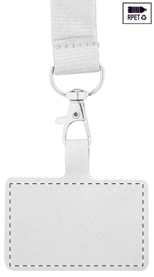 RPET lanyard na mobil s kovovou karabinou, bezpečnostní přezkou a vložkou na telefon ve stejné barvě.