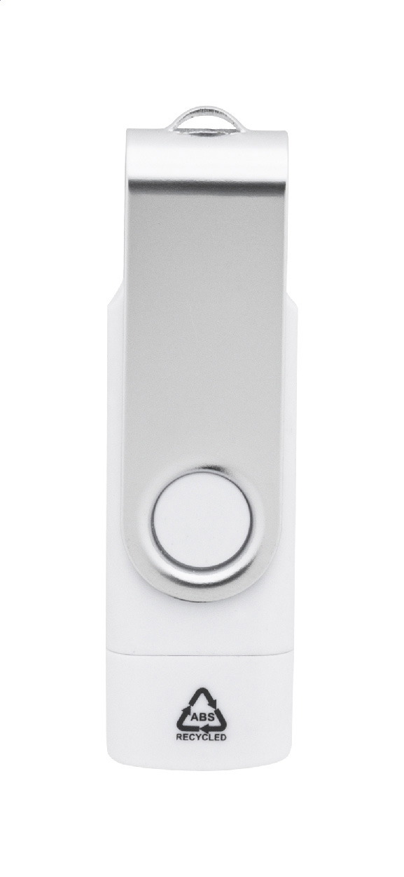 Otočný USB flash disk OTG v pouzdře z recyklovaného ABS a kovu s pamětí 8/16/32 GB. S připojeními USB a USB-C. USB 2.0.