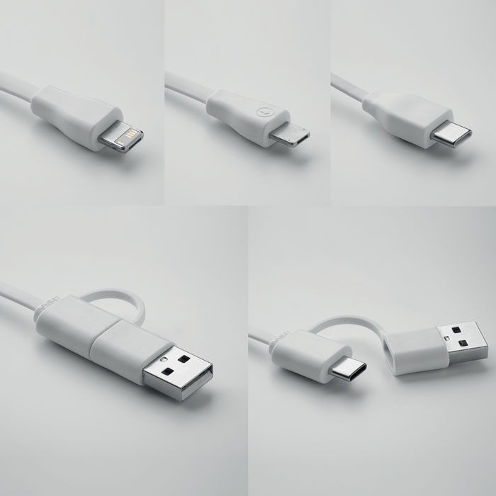 Bambusový přívěsek na klíče a stojánek na telefon s nabíjecím kabelem. Vstup: 2v1 Type-C a Type-A. Výstup: Type-C a micro-B (2v1 pin).
