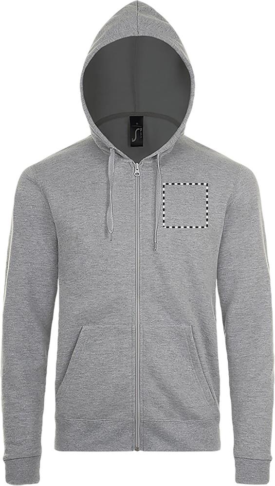 SOL'S STONE, Unisex mikina na zip, s klokaní kapsou. Kapuce se stahovací šňůrkou tón v tónu. Žebrovaná manžeta na lemu a rukávech. Boční šev. Žádný štítek na krku. Materiál: 260 g/m², kartáčovaný materiál z 50% bavlny a 50% polyesteru, OEKO-TEX.
