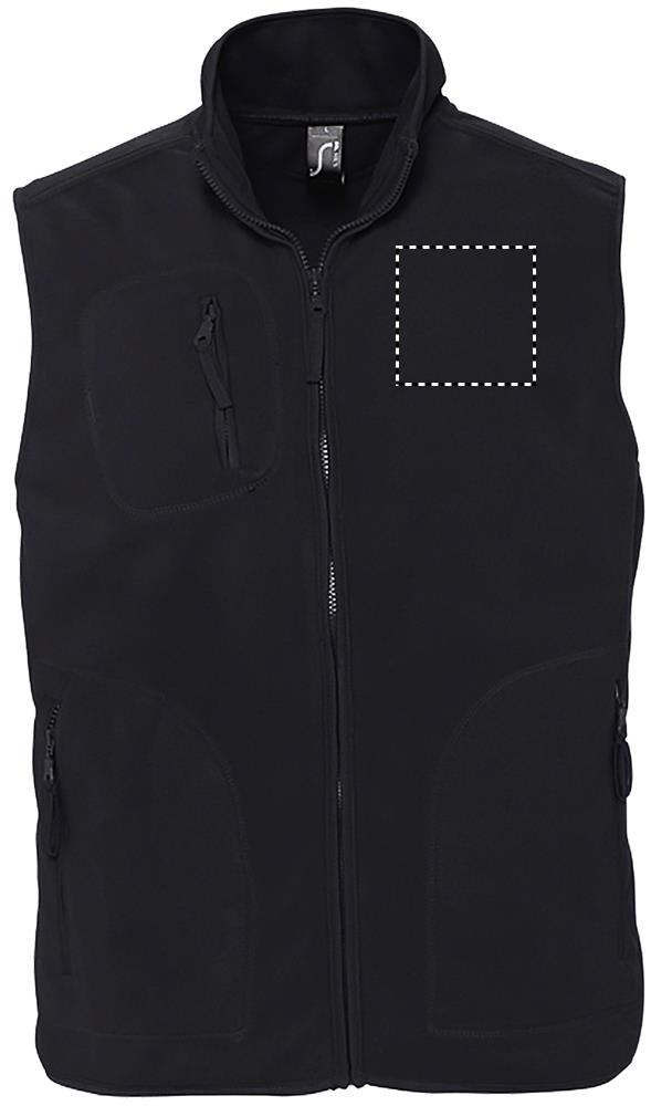 SOL'S NORWAY, UNISEX SLEEVELESS FLEECE CARDIGAN, 100% polyester s vysokou hustotou FLEECE 320, unisex, krátký střih, proti žmolkování, zpevňující páska u krku, vysoký podšitý límec, rovný střih, 3 kapsy na zip. Ohledně sladění velikostí se prosím podívejte na tabulku velikostí v sekci dokumentace k výrobku.