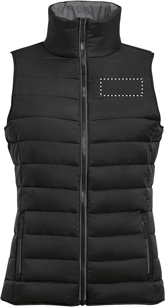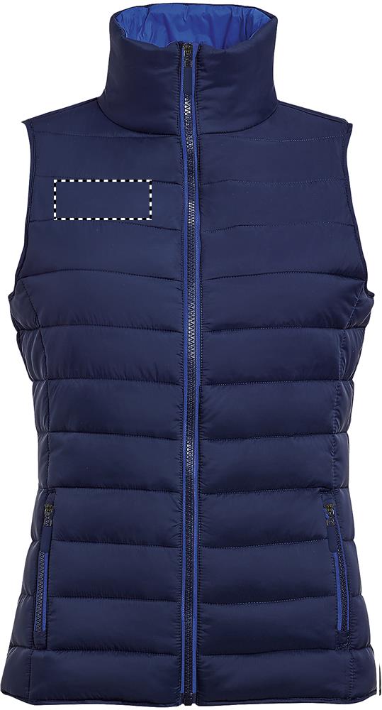 SOL'S WAVE Women, dámská vesta z lehkého materiálu. Toto je verze oblíbené bundy 'Ride' bez rukávů, nabízí větší volnost pohybu. Lze použít také jako další vrstvu pod bundu. 2 kapsy se stylovými zipy a barevně sladěnou podšívkou, vysoký límec, stylový střih. Materiál: 100% nylon, podšívka: 100% nylon, výplň: 100% polyester - 180 g / m2. Velikosti: S-2XL.