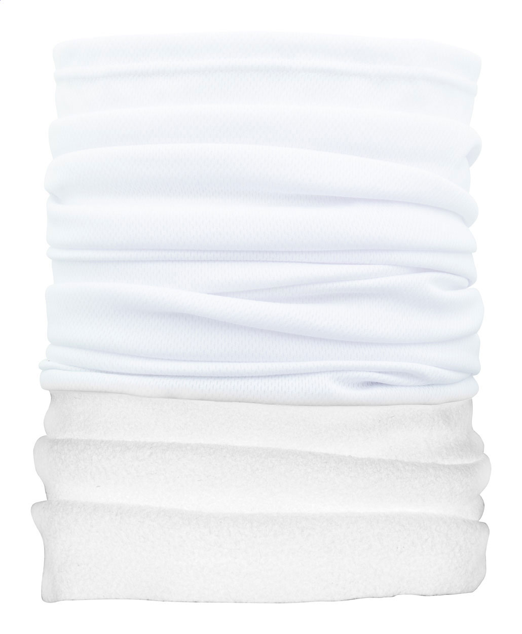 Víceúčelový šátek, vyrobený na zakázku z prodyšného a rychleschnoucího polyesteru s barevným zateplením na krku z polar fleecu. Cena zahrnuje celoplošně sublimačně tištěnou grafiku na polyesterové části, nezahrnuje tiskovou přípravu. Vyrobeno ze 100% polyesteru (135 g/m²) a polar fleecu (160 g/m²). Min. mn.: 100 ks.