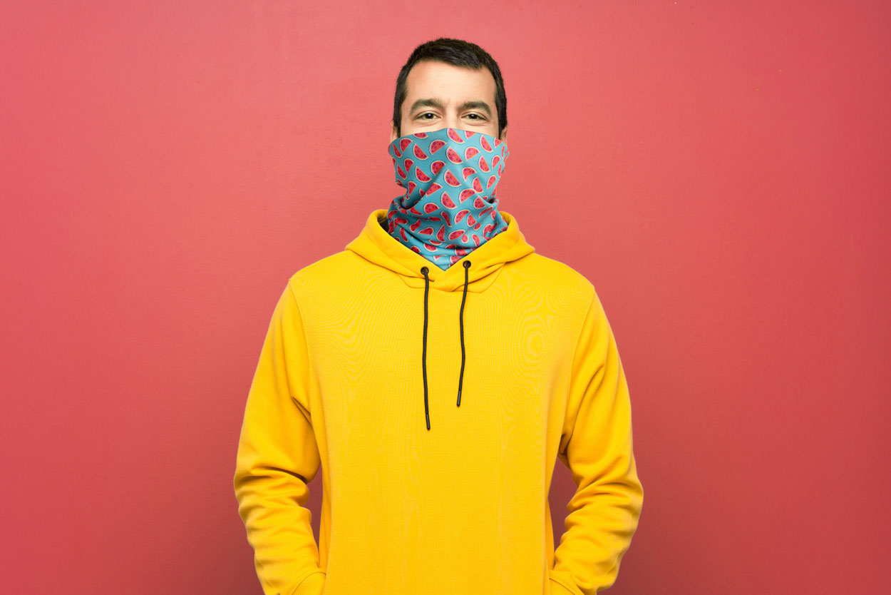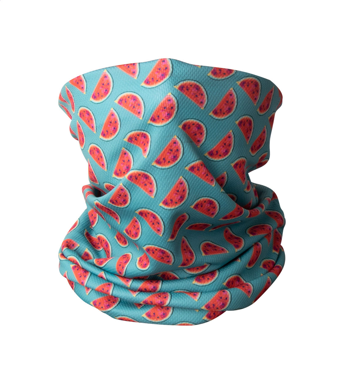 Víceúčelový šátek na zakázku z prodyšného a rychle schnoucího 100% polyesteru (135 g/m²) s celoplošným sublimační tiskem. Cena zahrnuje sublimační potisk, nezahrnuje tiskovou přípravu. Min. mn.: 100 ks.