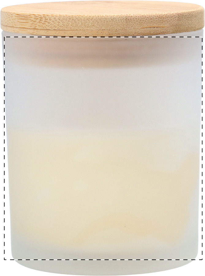Vonná svíčka s vůní vanilky ve skleněné nádobě s bambusovým víčkem.