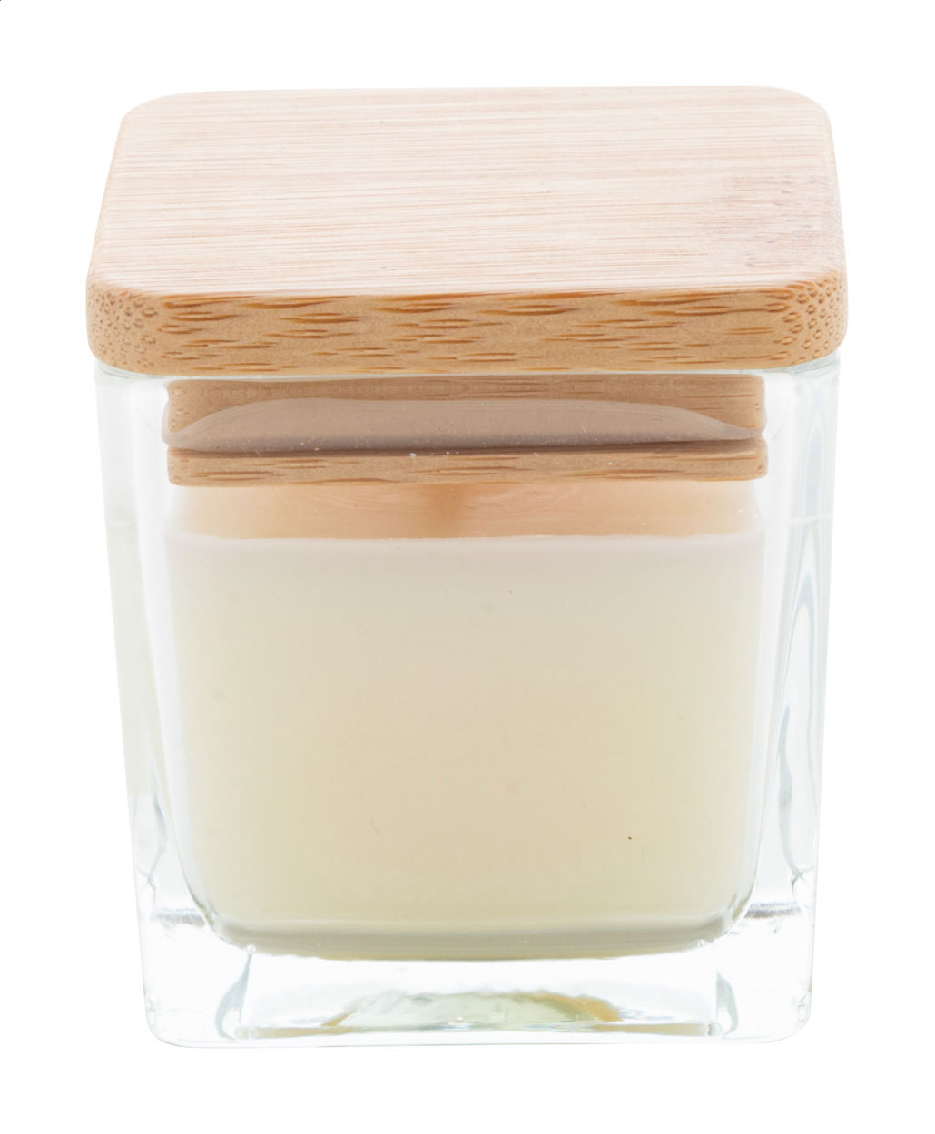 Vosková svíčka na rostlinné bázi ve skleněném držáku s bambusovým víčkem. S 50 gramy vosku. Doba hoření: 8 hodin. V kraftové papírové krabici.