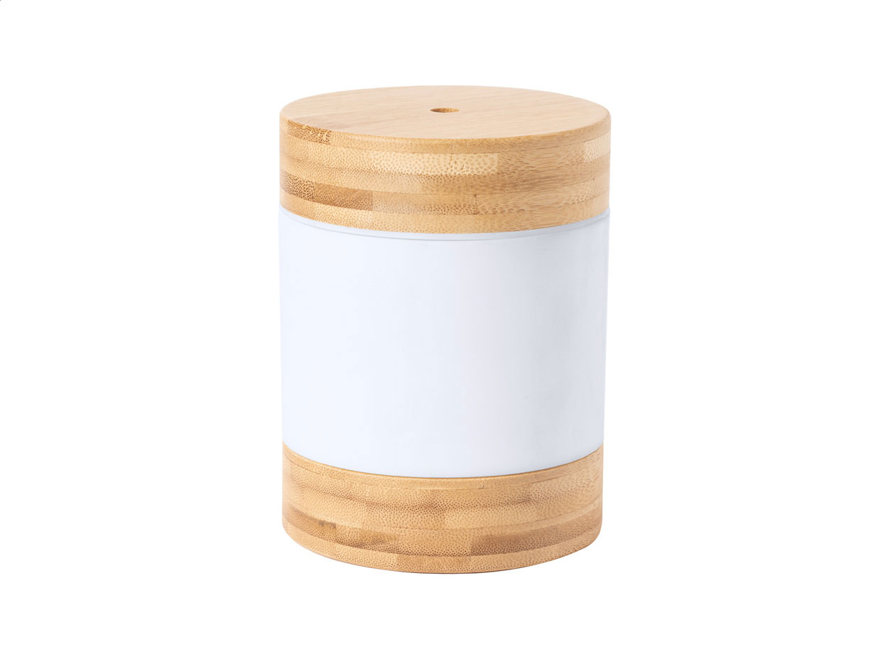 Bambusový stolní zvlhčovač vzduchu s LED světlem. Včetně USB napájecího kabelu. Objem nádržky: 250 ml. V kraftové papírové krabici.