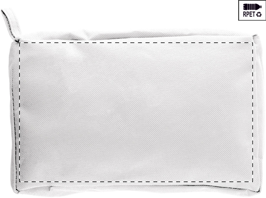 Kosmetická taštička z 600D RPET polyesteru se 2 přihrádkami na zip, s etiketou s označením RPET.