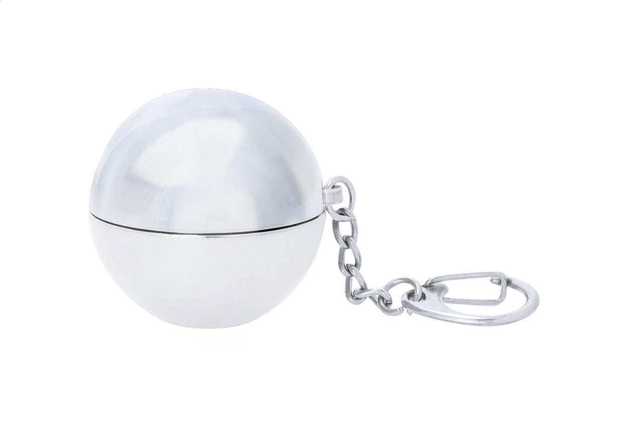 Kulatý vanilkový balzám na rty v kovovém držáku s kovovým kroužkem na klíče. S ochranou SPF15.