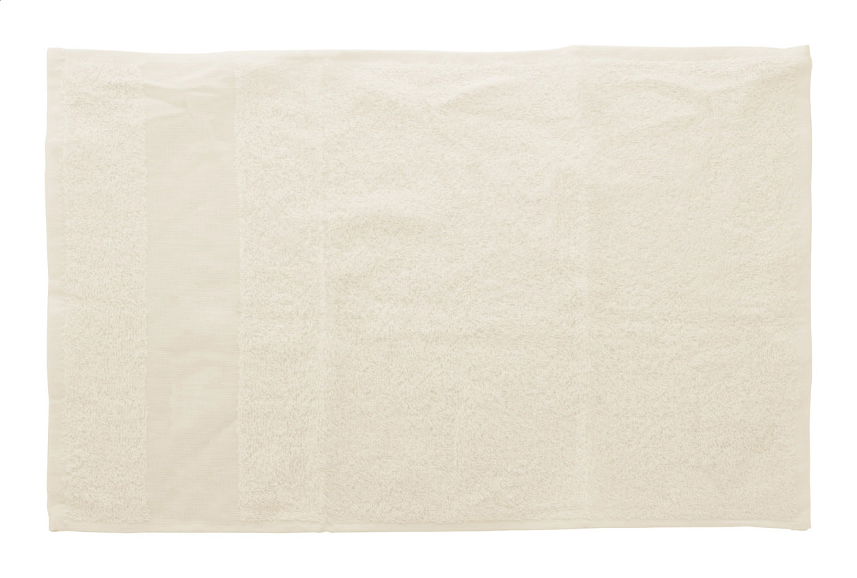 Bavlněný froté ručník pro hosty s poutkem na zavěšení a potiskovatelnou bordurou. 100% bavlna, 360 g/m².