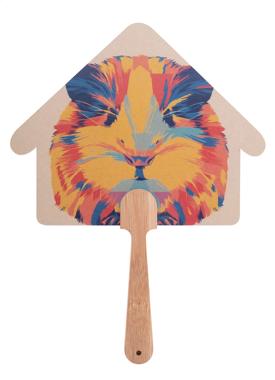 Vějíř vyrobený na zakázku s bambusovou rukojetí a kraftovým papírem. Cena zahrnuje digitální tisk na obou stranách, nezahrnuje tiskovou přípravu. Min. mn.: 100 ks.