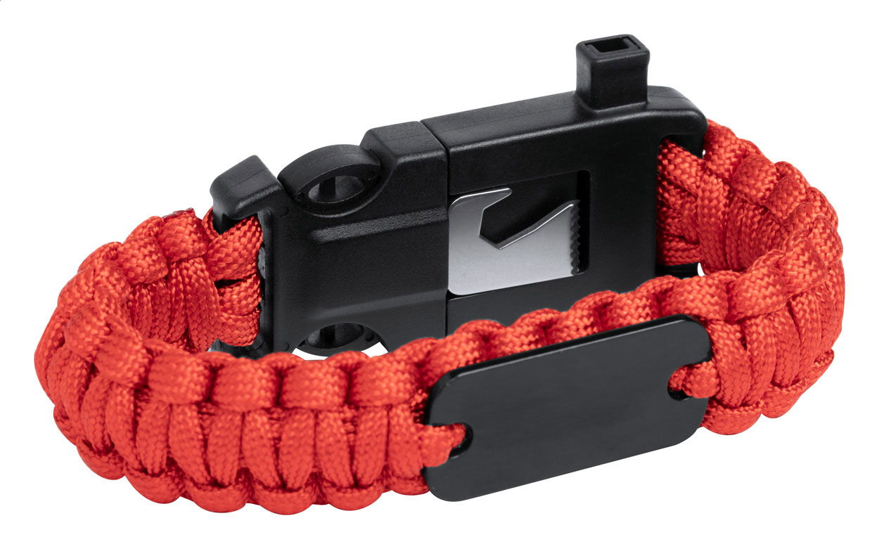 Multifunkční náramek na přežití z padákového nylonu s kompasem, píšťalkou a křesacím kamínkem na zapálení ohně.