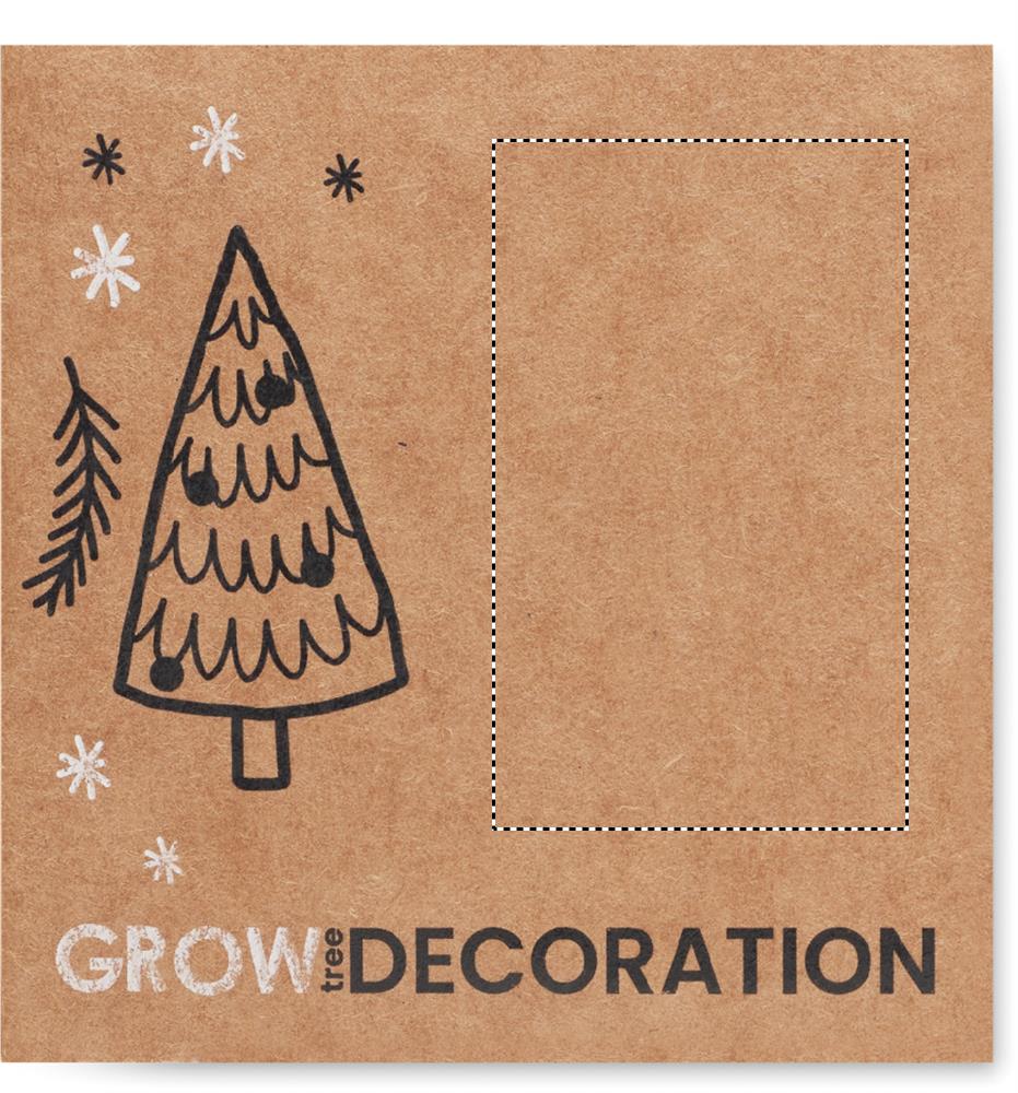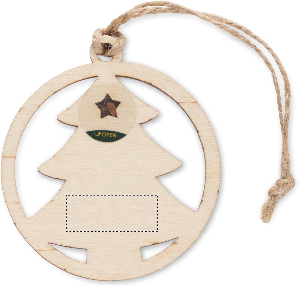 Dřevěná ozdoba ve tvaru stromku s jutovým provázkem a smrkovými semínky. V kraftové obálce. Vyrobeno v EU.